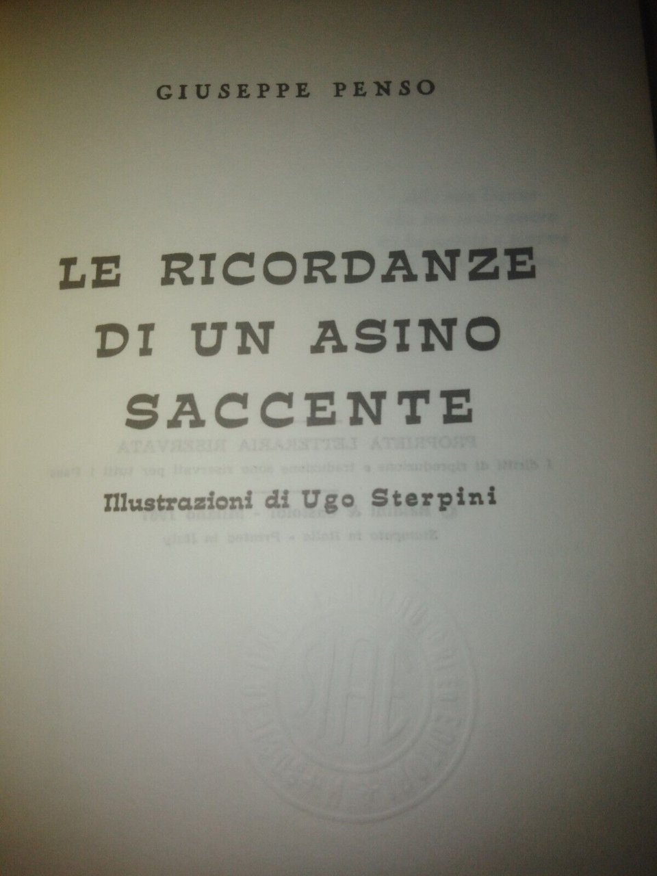 GIUSEPPE PENSO, Le ricordanze di un asino saccente - Baldini & Castoldi, 1967