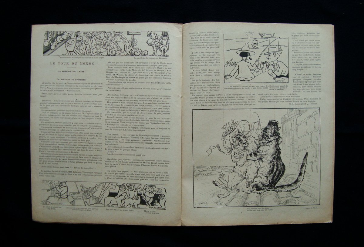Periodico, Le Rire" Journal Homoristique Paraissant le Samedi N 346, 7° annèe, 22 Juin 1901 Parigi 1901; cm 31x23,5, pp. n.n (16) Rivista rilegata con sottile cordella; copertina ill. a colori, bei disegni in b/n nel t. e f.t.e in chiusura due pag di ins. pubb. dell'epoca. Numero completo. Condizioni di conservazione Esemplare in buone condizioni con tracce d'uso, margini con leggere bruniture, dorso con piccolissime abrasioni e strappetto alla cuffia inf. Numero completo. Rivista francese di satira politica e sociale, fondata a Parigi durante la Bella Epoque SC03.D14450F blu "