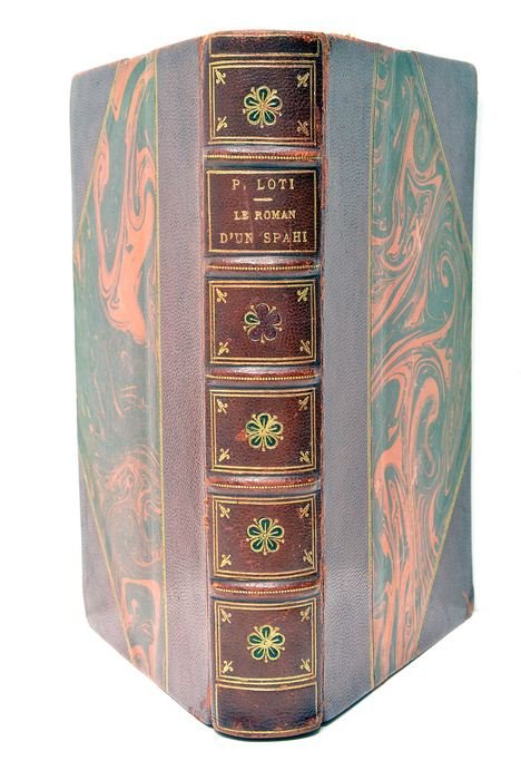 De 360 pages. Demi maroquin à coins bordeaux, dos à nerfs orné de caissons, tête dorée (couvertures et dos conservés). Exemplaire N° 402, sur velin du Marais. Bon exemplaire bien relé. Loti a trente et un ans, et signe pour la première fois de son pseudonyme ce qui est son premier roman véritable. L'intrigue rendra l'auteur célèbre : un Français, transplanté dans une contrée lointaine, ici le Sénégal y connaît un grand amour. Il meurt ; sa maîtresse se tue, après avoir tué son enfant. On trouve dans ce récit l'Afrique, ses plaines, ses forêts, à l'époque peu connues, et décrites par la sensibilité d'un poète. On trouve la double aventure de l'amour et de la guerre. Rousseuers.