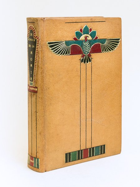 Un des 100 exemplaires sur Japon impérial contenant deux états des eaux-fortes, dont un état avec remarque et la suite à part des bois en noir sur Chine, Compositions originales de Georges Rochegrosse gravées à l'eau-forte par E. Decisy, 1 vol. grand in-8 reliure plein maroquin havane mosaïquée avec motifs égyptiens, couv. et dos conservés, tête dorée, reliure signée R. M. Mompes, F. Ferroud, Paris, 1920 Bel exemplaire sur Japon impérial (n°105 réservé à M. Brettes, avec mention manuscrite de l'éditeur Ferroud), relié dans une intéressante reliure mosaïquée aux motifs égyptiens antiques (un timbre récent à l'effigie de Théophile Gautier a été contrecollé sur la couverture conservée), avec les eaux-fortes en deux états, la suite sur bois à part et un beau-portrait de Georges Rochegrosse. Magnifique ouvrage.