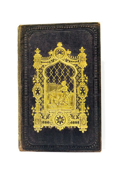 3 feuillets. 282 pages. 8 planches hors-texte. (19x13 Cm). Pleine percaline bleu nuit, au centre de laquelle dans une belle plaque dorée, figure un garçonnet donnant à manger à son chien. (Reliure signée Lenègre). Auteur prolifique pour la jeunesse, Champagnac fait précéder l'ouvrage d'une dédicace "À Messieurs de l'Académie Française", et d'une longue introduction de 49 page, dans laquelle il analyse l'enseignement moral du conte qui met en garde contre l'imitation "qui fait des hommes une race moutonnière". Quant à la forme, il ajoute: "l'ouvrage n'a rien conservé de son origine germanique, si ce n'est le fond des choses qui est excellent et que nous avons conservé religieusement.". L'ouvrage est illustré de huit lithographies sur fond bistre de Derancourt. Rousseurs.