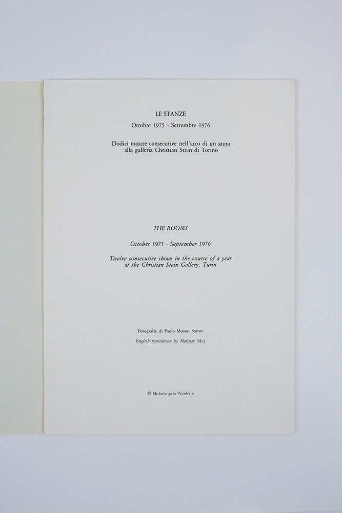 Le stanze. Ottobre 1975 - settembre 1976. Dodici mostre consecutive nell’arco di un anno alla galleria Christian Stein di Torino [Tau / Ma 5]