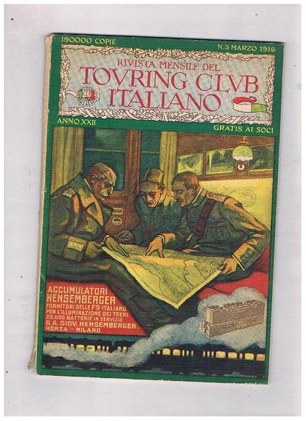 Le vene della guerra (dopo una visita alla fronte); segue chi inventò il tricolore: Giuseppe Compagnoni 1754-1834; ecc. Articoli contenuti nel n° 3 marzo 1916 della rivista mensile del Touring Club Italiano. Con una bella bross. edit. ill. a colori da Dudovich.