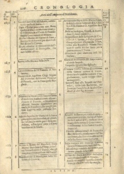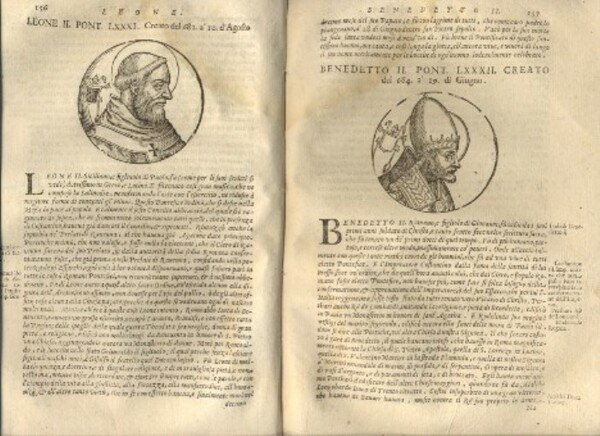 In 8°, p. perg., cc.nn. 3 + pp. 16 cc.nn. 34 + pp. 880 con numerose piccole inc. raffiguranti i ritratti dei vari Pontefici. SEGUE : Supplemento alle vite de Pontefici, scritte dal Padre Antonio Foresti, in continuazione al suo Mappamondo, cioè dall'anno 1676 sino all'anno presente 1703, da p. 327 a p. 364. SEGUE: La cronologia ecclesiastica del Padre Panuinio, dall'imperio di Giulio Cesare Dittatore sino all'Imperatore Cesare Massimiliano II d'Austria, pp. 216. La p. 869/870 si presenta sciolta.