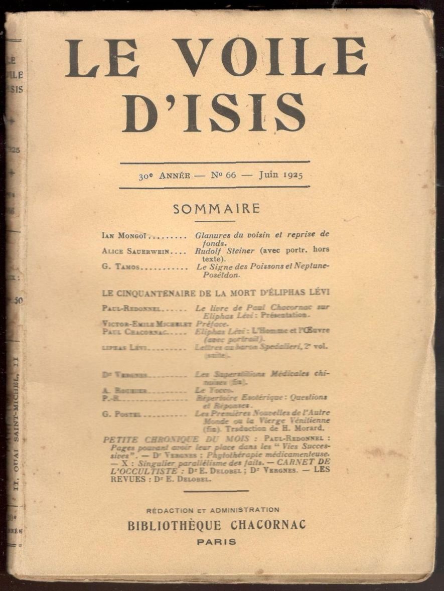 Le Voile d'Isis. Revue Mensuelle de Haute Science. Directeur: Paul Chacornac. N. 66 - Juin 1925