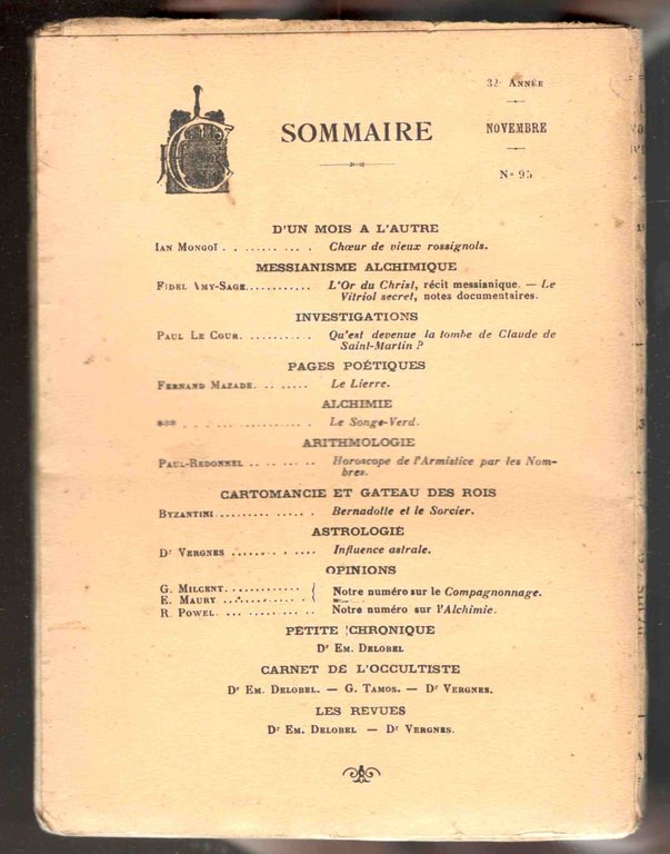 Le Voile d'Isis. Revue Mensuelle de Haute Science. Directeur: Paul Chacornac. N. 95 - Novembre 1927