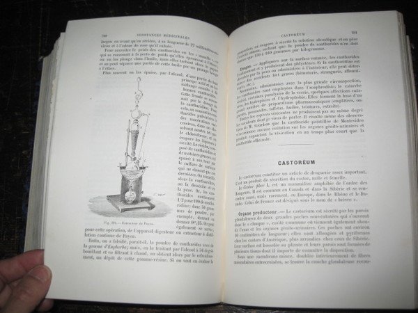 In-8°, pp. XI, 1018, (2), leg. m. pelle verde cupo con tit. e filetti oro. 344 figg. silogr. intercalate n.t. Eccellente esemplare. Prima edizione di questa estesissima opera. L'autore tratta del microscopio e del suo impiego nell'analisi delle materie prime organiche, delle principali materie alimentari (latte, uova, i cereali, la fecola, il cacao, il caffé, il té, gli zuccheri, il miele, etc.), delle spezie, degli aromi, delle fibre tessili, delle tinture, delle gomme, delle resine, delle essenze, delle materie oleose, delle sostanze mediche di derivazione animale e vegetale, delle pelli e dei resti animali, delle perle, dei coralli e delle spugne, dei tabacchi. Il Pennetier fu direttore del Museo di Storia Naturale di Rouen, professore di fisiologia e membro di numerose accademie. Manca al Bitting e al Vicaire.