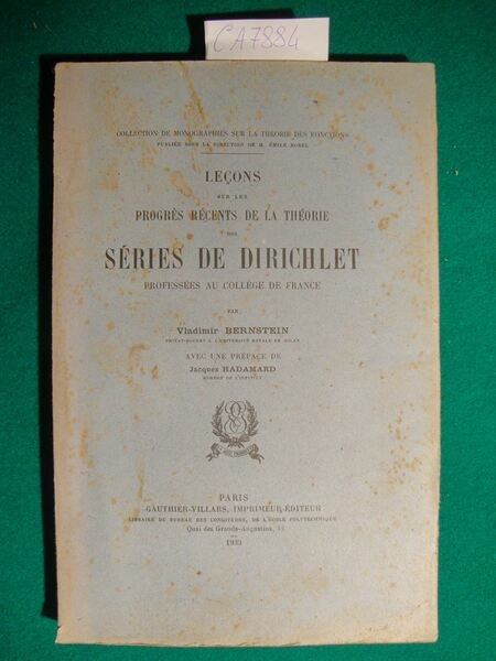 Leçons sur les progrès récents de la théorie des séries de dirichlet professées au collège de France - Avec une préface de Jacques Hadamard