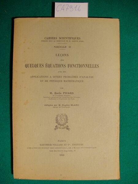 Leçons sur quelques équations fonctionnelles avec des applications a divers problèmes d'analyse et de physique mathématique (Fascicule III) - Redigées par M. Eugène Blanc