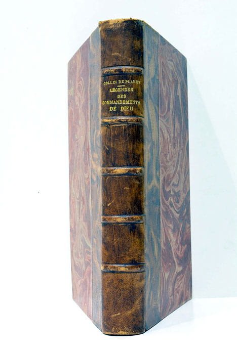 396 pages. 5 feuillets. Illustrations en couleurs hors-texte. (22x14cm). Demi-cuir. Couverture légèrement frottée et salie. Dos un peu émoussé. Bien relié. Couverture d'origine à l'interieur. Cet ouvrage, publié à Paris en 1864, s'inscrit dans le contexte du XIXe siècle marqué par un renouveau religieux et spirituel en France. J. Collin de Placy, connu pour ses travaux sur le folklore et la mythologie, offre ici une exploration des commandements divins à travers le prisme des légendes. En pleine période de transformation sociale et industrielle, l'auteur puise dans le patrimoine culturel et religieux pour offrir une lecture qui se veut à la fois édifiante et instructive. Papier légèrement bruni avec petites atches éparsesa sans gravité. Illustrations en couleur et à l'or hors-texte. Beau exempalire.