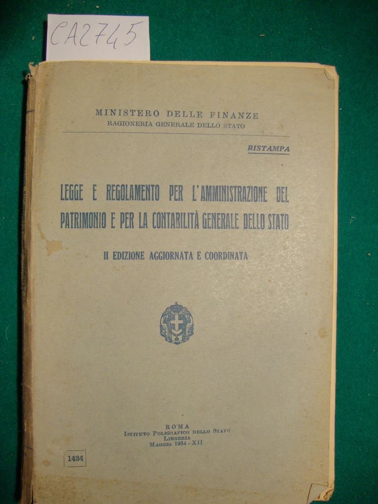 Legge e regolamento per l'amministrazione del patrimonio e per la contabilità generale dello Stato - Ristampa