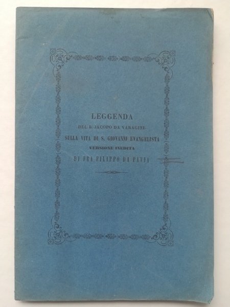 In 8 (cm 16 x 23,5), pp. 17 + (1). Brossura editoriale. Pubblicazione edita in occasione dell'ingresso a S. Pantaleone, a Venezia, del nuovo pievano Bartolomeo Degan. La leggenda di Jacopo da Varagine e' tratta da un codice conservato nella Biblioteca Marciana, trascritto nel secolo X, attribuita a Fra Filippo di Pavia. Zambrini, Le opre volgari a stampa dei secoli XIII e XIV, p. 567.