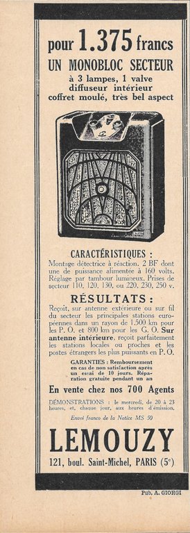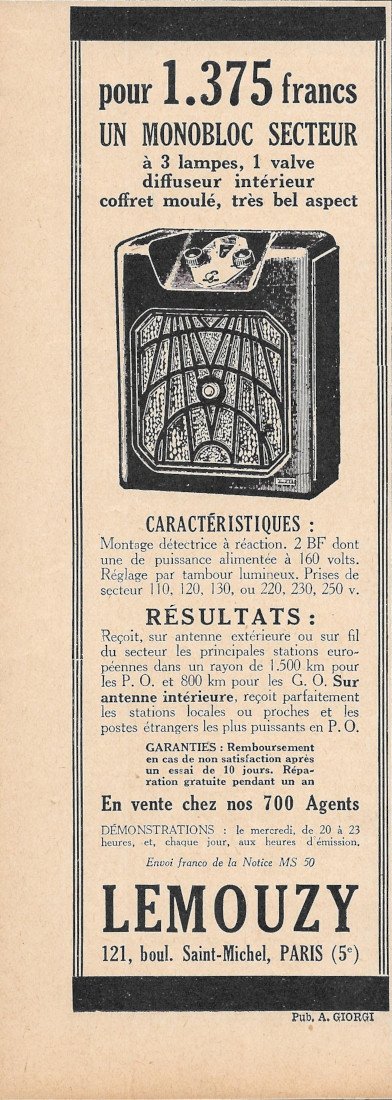 Lemouzy un monobloc secteur - Advertising 1932