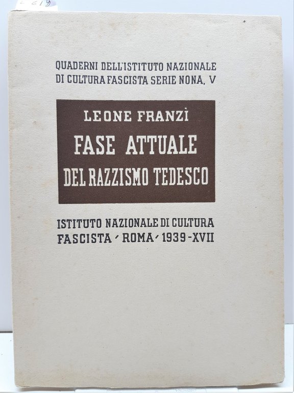 Leone Franzi Fase attuale del razzismo tedesco Istituto Nazionale di cultura fascista 1939