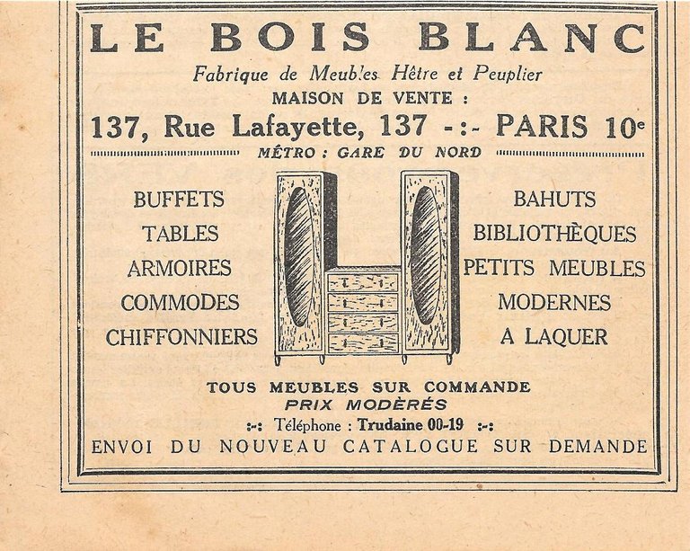 Les Bois Blanc. Fabrique de meubles hetre et peuplier. Advertising 1926