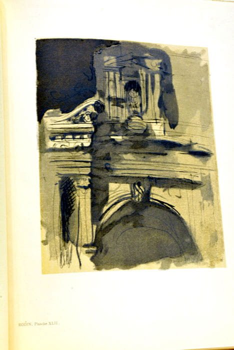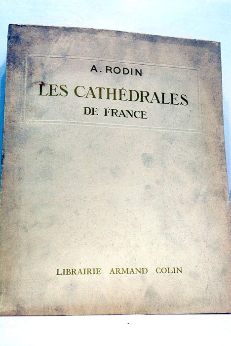 4 feuillets. CIX. 162 pages. 100 planches hors-texte. 1 feuillet. 1 feuillet blanc. (29x23,5 Cm). Broché. Couverture imprimé. Rodin nous fait découvrir sous un jour nouveau les grandes cathédrales de France : Étampes, Mantes, Nevers, Amiens, Le Mans, Soissons, Reims, Laon, Chartres ou Notre-Dame de Paris. Il s’agit d’un profond chant d’amour où se mêlent l’émerveillement et l’amour devant ces incomparables édifices. Notre exemplaire est l'un des cinquante exemplaires sur vieux Japon à la forme des Manufactures Impériales. Exemplaire non-coupé.