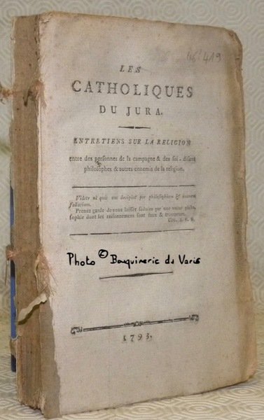 LES CATHOLIQUES du Jura. Entretiens sur la Religion entre des personnes de la campagne & des soi-disant philosophes et autres ennemis de la religion.