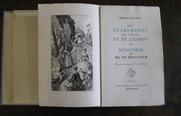 Paris, Aux Editions du Val de Loire, 1948. In -16 a fogli sciolti, pp. 285-(5) con 7 incisioni al bulino di P. GANDON contenute in fondo al volume, in doppia suite in nero e in sanguigna, in apposita busta. Brossura editoriale a risvolto in camicia e cofanetto di cartone. La nostra copia è una delle 650 su "vélin du Marais" e comprende eccezionalmente la suite delle incisioni in sanguigna. Ottimo esemplare.