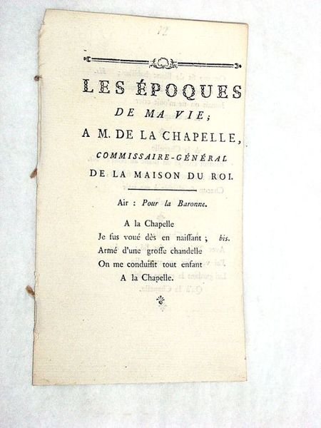 Les époques de ma Vie ; A M. de La Chapelle, Commissaire-Général de la Maison du Roi.