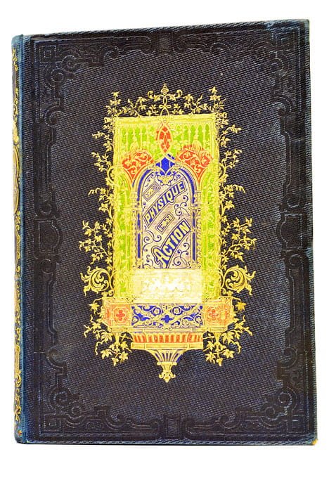 Frontispice. 2 feuillets. 223 pages. 11 figures hors-texte. (20x14,5 Cm). Percaline bleue, titre et décors polychromes, tranches dorées. Reliure de l'époque avec quelques défauts, (deux décors colorés manquent au dos, et un coin inférieur est légèrement émoussé, petites rousseurs). Le frontispice montre un groupe de jeunes gens avec une lanterne magique, tandis qu'un autre assis par terre souffle dans un chalumeau pour former une belle bulle de savon. Les 11 autres lithographies (signées A.B.) tirées en bistre chez Lemercier, décrivent les différents phénomènes physiques évoqués dans le texte: électricité, train à vapeur, optique, fantasmagorie etc. Première édition de ces récits instructifs menés avec pédagogie par un enseignant du Collège Sainte Barbe à Paris, qui tente d'expliquer les grandes nouveautés scientifiques révélées dans les actualités de l'époque. Ainsi, l'aimable professeur choisit-il les courses de l'Hippodrome ou le triple galop des chevaux du cirque Franconi pour expliquer la force centrifuge; ou encore les soirées de Robert-Houdin au théâtre de Comte pour la fantasmagorie, etc. Cette causerie scientifique mais vivante, nous met au cœur des nombreuses soirées amusantes - "les tableaux magiques, les ombres chinoises, Polichinelle, les feux pyriques" -auxquelles étaient conviés les enfants de l'époque. Très bon exemplaire à part les quelques rares taches et rousseurs. Gumuchian 1511.