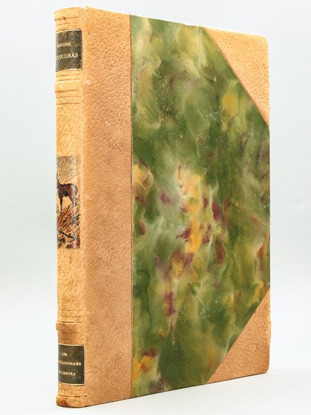 Un des 600 exemplaires sur papier vélin pur chiffon à la forme numéroté, 1 vol. in-4 reliure de l'époque plein chagrin havane, dos à 4 nerfs, aquarelle (chamois), en dos, couv. cons., Editions Littéraires et artistiques, Paris, 1943, 3 ff., 243 pp. et 1 f. Agréable exemplaire établi dans une intéressante reliure pour ce bel ouvrage consacré à la chasse à cour. Les splendides aquarelles du Baron Reille sont de toute fraîcheur (rel. lég. frottée). Une très belle édition de ce classique de la littérature cynégétique.