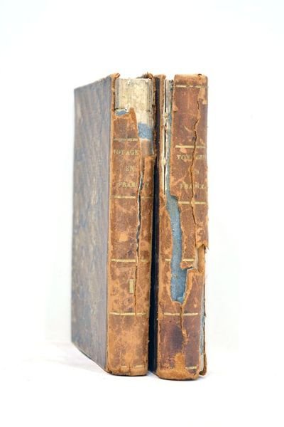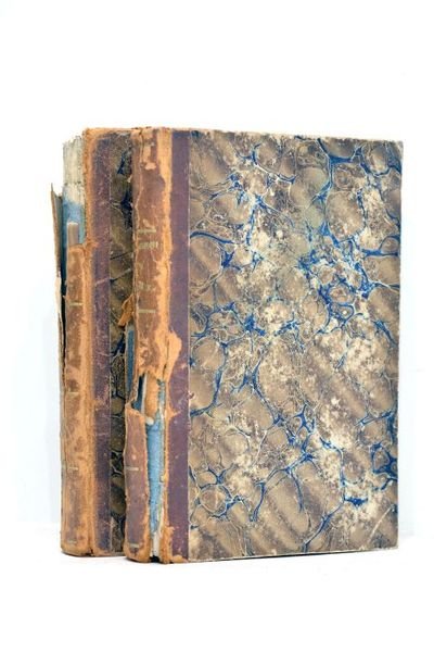 2 volumes. Tomes 1 et 4 seuls. XIV. 294 pages. 2 planches illustrées. + Frontispice. 288 pages. (16x10,5cm). Demi-basane. Dos lisse titré. Plats en cartonnage couvert de papier marbré. Reliure usagée. Dos entièrement détérioré. Fendillements, épidermures et manques de cuir sur le dos. Charnières fendues. Frottements sur les plats et les coupes. Coins mollement épointés. Rousseurs et défauts d'usage à l'intérieur. Etat intérieur acceptable. 2 volumes reliés dans une demi-basane du temps qui mérite une importante restauration, notamment sur le dos. Quelques planches illustrées à l'intérieur.