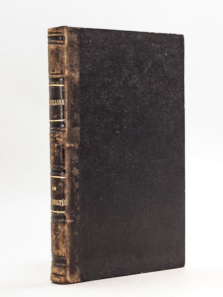 1 vol. in-8 reliure de l'époque demi-basane noire, dos à 6 nerfs, Michel Lévy Frères, Paris, 1855, 187 pp. et Didier, Paris, 1855, 78 pp. Rare exemplaire de l'ouvrage de l'avocat, journaliste et homme politique Cappot-Feuillide (1800-1863) qui y annonce et y espère la fin des Nations et l'unité de l'Humanité. Etat très satisfaisant (reliure un peu frottée, qq. rouss., très bon état par ailleurs)