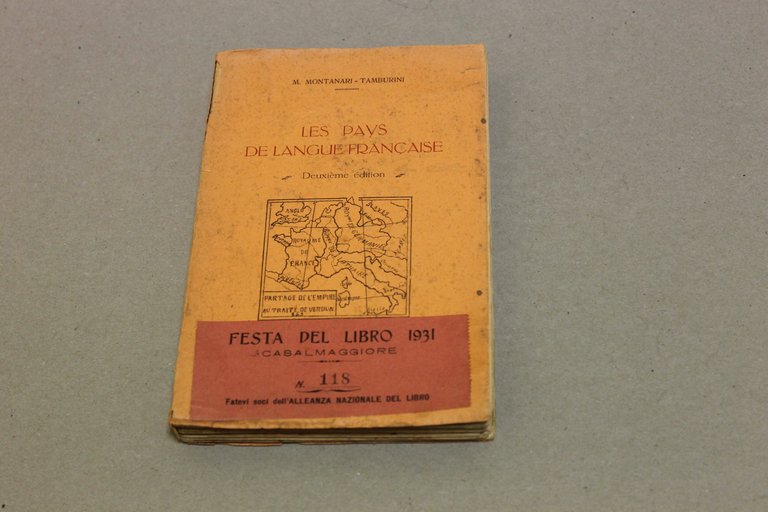 M. Montanari - Tamburini Les pays de langue francaise. Rimini, Ercole Capelli editore 1926 french, in ottavo pp.372 Volume in lingua francese, volume con etichetta in copertina della Festa del libro del 1931 a Caslmaggiore, copertina in cartoncino sottile attaccata solo nella parte centrale, pagine interme in ottimo stato da refilare sui tre lati, immagini in Bn