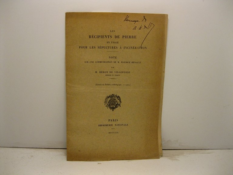 Les re'cipients de pierre en usage pour les se'pultures a' incine'ration. Note sur une communication de M. Maurice He'nault. Extrait di Bulletin archeologique - 1909