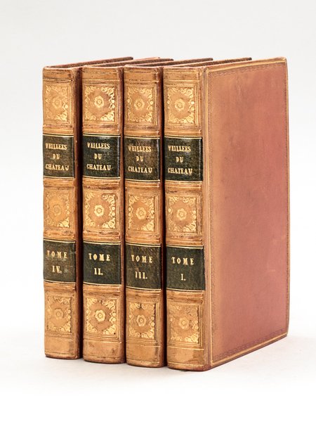 4 vol. in-18 reliure romantique plein veau cerise, dos à 4 nerfs orné, filet doré d'encadrement et roulette d'encadrement estampée à froid en plats, tranches marbrées, Chez G. G. & J. Robinson, Paternoster-Row, Londres, 1796, xx-360 ; 410 [ sur 413 ] ; 346 ; 327 pp. Bel exemplaire en reliure anglaise, incomplet des 2 derniers feuillets du second tome. L'attachement sentimental de la propriétaire (Arabella ***) à ses ouvrages devait être fort car elle les a fait établir dans ces belles reliures de maître malgré ce manque (dos et plats souvent passés, bel exemplaire par ailleurs). Prix en l'état.