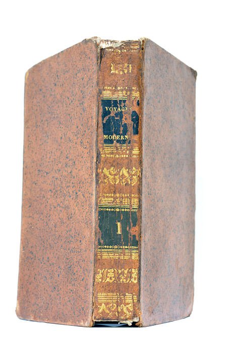 3 feuillets dont le frontispice. 348 pages. (17,5x10 Cm). Plein cuir. Dos lisse orné. Coiffes manquantes. Coins émoussés. Charnières fendues. Récit de voyage. Terre-Neuve. Le Canada. Quelques taches éparses. Bon exemplaire.