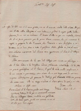 Lettera autografa firmata, datata 10 agosto 1803 - Milano, inviata ad Alessandro Barbieri, Segretario del Collegio Nazionale di Modena.