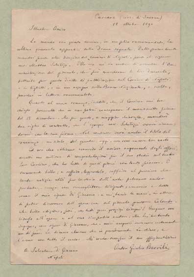 Lettera autografa firmata, datata 18 ottobre 1890 - Carcare (SV), inviata a Salvatore Di Giacomo.