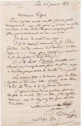 Lettera autografa firmata, datata 26 gennaio 1858 - Parigi, inviata al Sig. Hilpert.