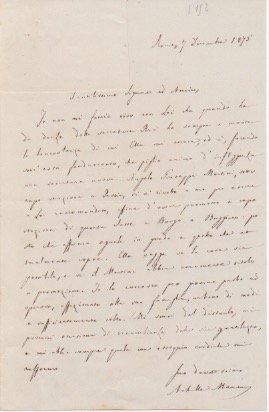 Lettera autografa firmata, datata 7 dicembre 1875 - Roma, inviata a un amico.