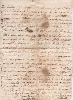 - 320x215 mm. 1 bifolio, scritta 1 pagina. Manoscritto a inchiostro nero talvolta un poco scolorito a motivo dell’umidità. Alcuni piccoli fori della carta con minima perdita di testo. Al verso della seconda carta l’indirizzo del destinatario (non leggibile). Traccia di sigillo e taglio di una parte della carta bianca.