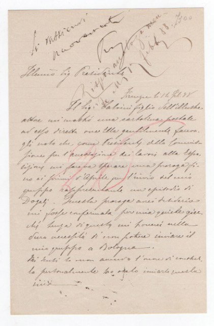 Lettera autografa firmata inviata al Presidente dell’Esposizione di Bologna.