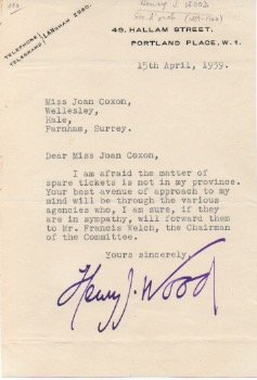 AUTOGRAFO“I afraid the matter of spare tockets is not in my province. Your best avenue of approach to my mind will be through the vorious agencies who, I am sure, if they are in sympanthy [.] the Chairman of the Committee [.]”.