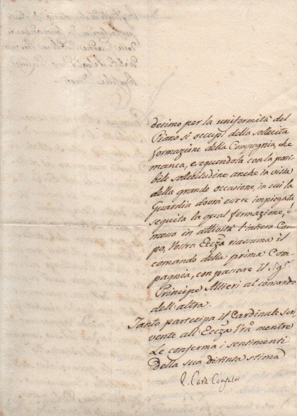 AUTOGRAFOLa lettera è relativa ai “Biglietti di Segreteria di Stato per la carica di Comandante delle Guardie Nobili in persona di S. E. il Sig. Dica D. Luigi Braschi Onesti”. Firmata: “Card. Consalvi”.
