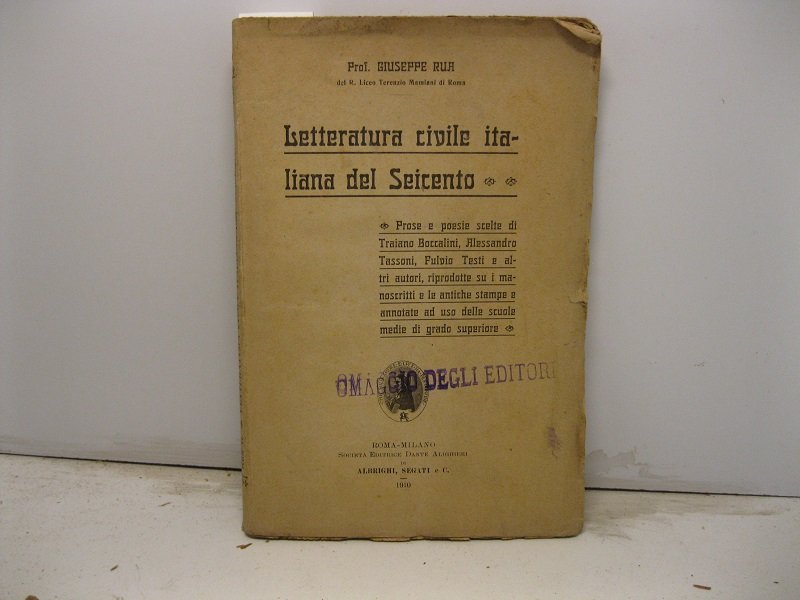 Letteratura civile italiana del Seicento. Prose e poesie scelte di Traiano Boccalini, Alessandro Tassoni, Fulvio Testi e altri autori, riprodotte su i manoscritti e le antiche stampe e annotate ad uso delle scuole medie di grado superiore