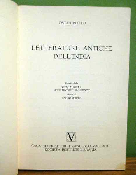Letterature antiche dell'India. Estratto della Storia delle letterature d'Oriente diretta da Oscar Botto