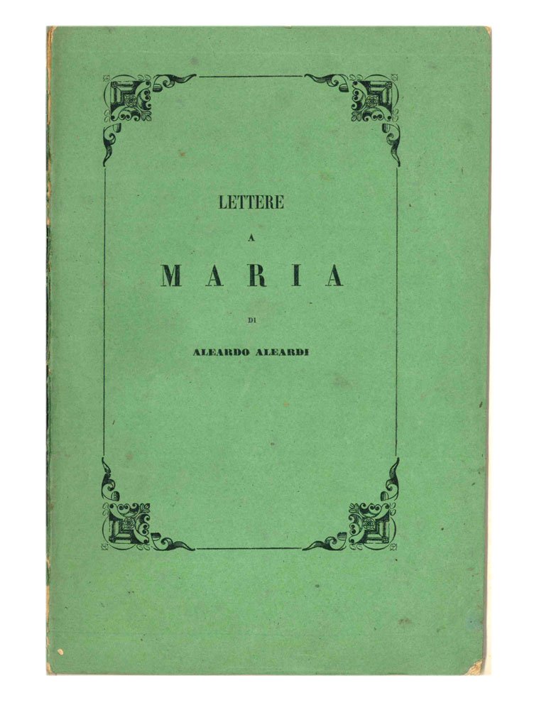 LIBROSeconda edizione.Ottimo esemplare nella rara brossura originale (normali lievi segni del tempo).L’edizione Minerva segue la rarissima princeps veneziana del 1846. Operetta di stampo romantico stesa alla maniera dell’epistola latina filosofica e moraleggiante: «[.] il poeta propone un platonico amore, in nome delle comuni sofferenze, a una cara amicizia, e parla del destino umano, dell’immortalità dell’anima, dei motivi per cui crede in essa. Le “Lettere a Maria” ebbero fortuna perché corrispondevano a quella affettuosità del sentimento tanto celebrata in altri poeti, come ad esempio in Lamartine, e a quell’ansia di certezza, d’infinito, di religiosità che costituiva uno dei motivi fondamentali della temperie romantica» (E. Caccia, voce DBI vol. 2, 1960).