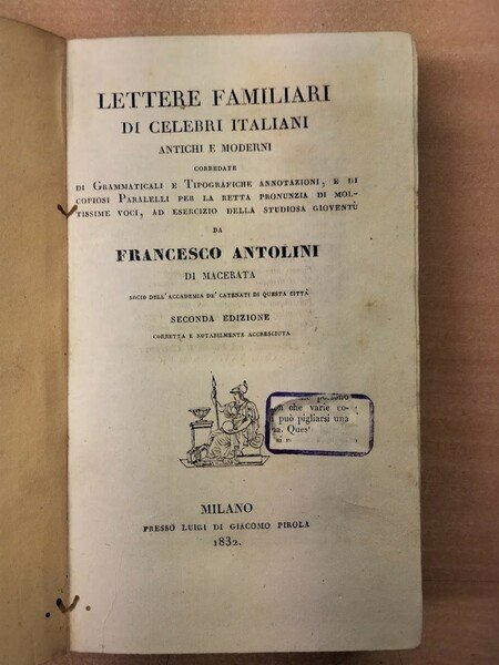 Lettere familiari di celebri italiani antichi e moderni corredate di grammaticali e tipografiche annotazioni, e di copiosi paralelli per la retta pronunzia di moltissime voci.