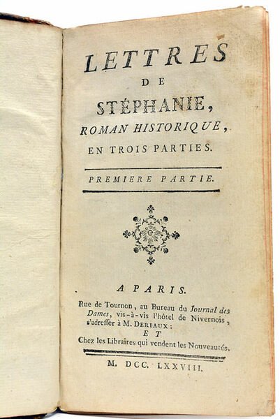 • A Paris, rue de Tournon, au Bureau du Journal des Dames, et chez, les Libraires qui vendent les Nouveautés, 1778.