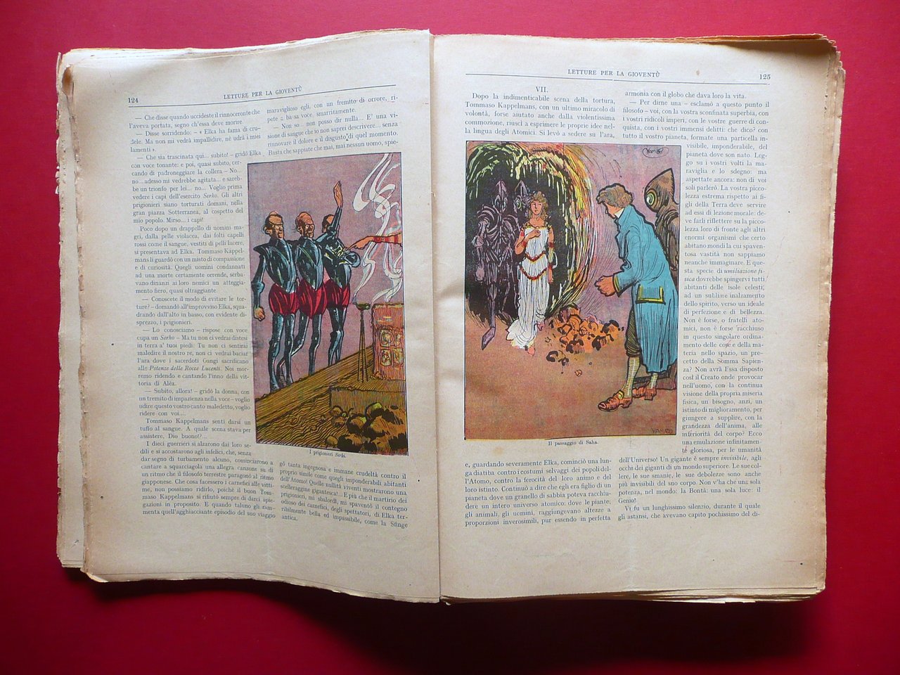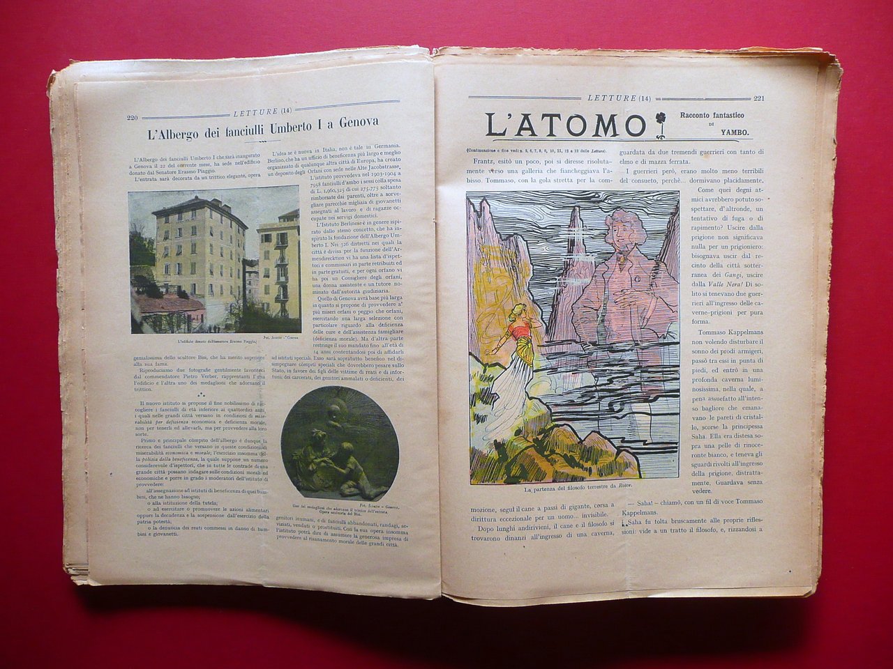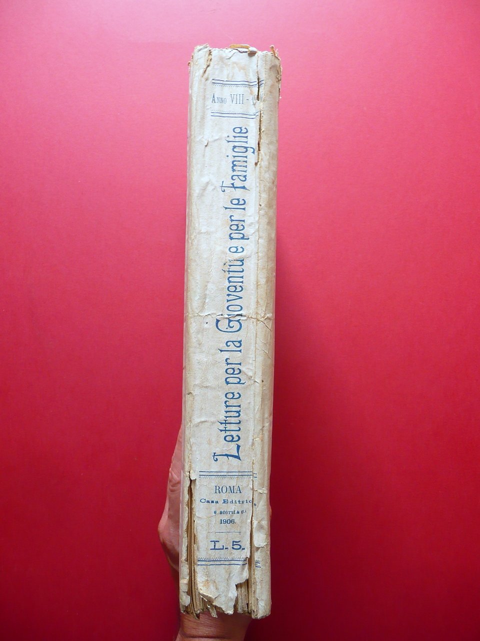 52 numeri (annata completa), † Letture per la giovent˘ e per le famiglie rivista settimanale illustrata a colori anno VIII - 1906 Casa Editrice G. Scotti, Roma 1906; cm 30x22; pp. IV-832 (esemplari autonomi con numerazione progressiva annuale), con varie ill. in b/n e a col. sia nel t. che fuori t.; brossura ed. ill. a colori. 52 numeri completi, inseriti entro un'unica legatura. Ciascun numero presenta alcune belle ill. a colori di Yambo (vedi foto). † Condizioni di conservazione Esemplare in discrete condizioni con tracce d'uso e alcune piccole leggere bruniture; brossura ed. con alcune leggere tracce di sporco, piccoli strappetti e mancanze ai margini e agli angoli; qualche traccia di piega; cuffie con alcuni strappetti. Brossura post. con leggero alone di colore rosa. Cuciture di alcuni fascicoli allentate; margini di alcune pagine con alcuni piccoli strappetti e/o pieghette. Alcune pagine con minimi accenni d'ingiallimento dovuti al tipo di carta. † 52 numeri completi, corrispondenti all'annata 1906. Tra le varie illustrazioni ve ne sono alcune a colori firmate Yambo (almeno due per ciascun numero). Presente anche un suo racconto completo, uscito su pi˘ numeri, intitolato l'atomo" (vedi foto indice). Raccolta rara. Condizioni come da foto e da descrizione. † SETT184.L17274 N "