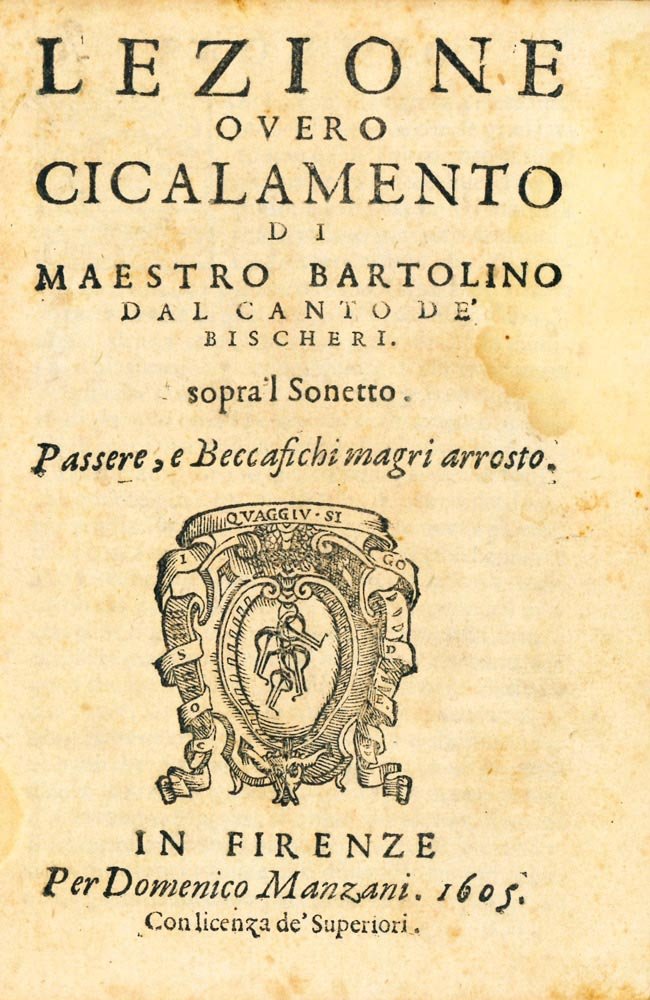 Lezione overo cicalamento di Maestro Bartolino dal canto de’ Bischeri sopra’l Sonetto «Passere, e Beccafichi magri arrosto»