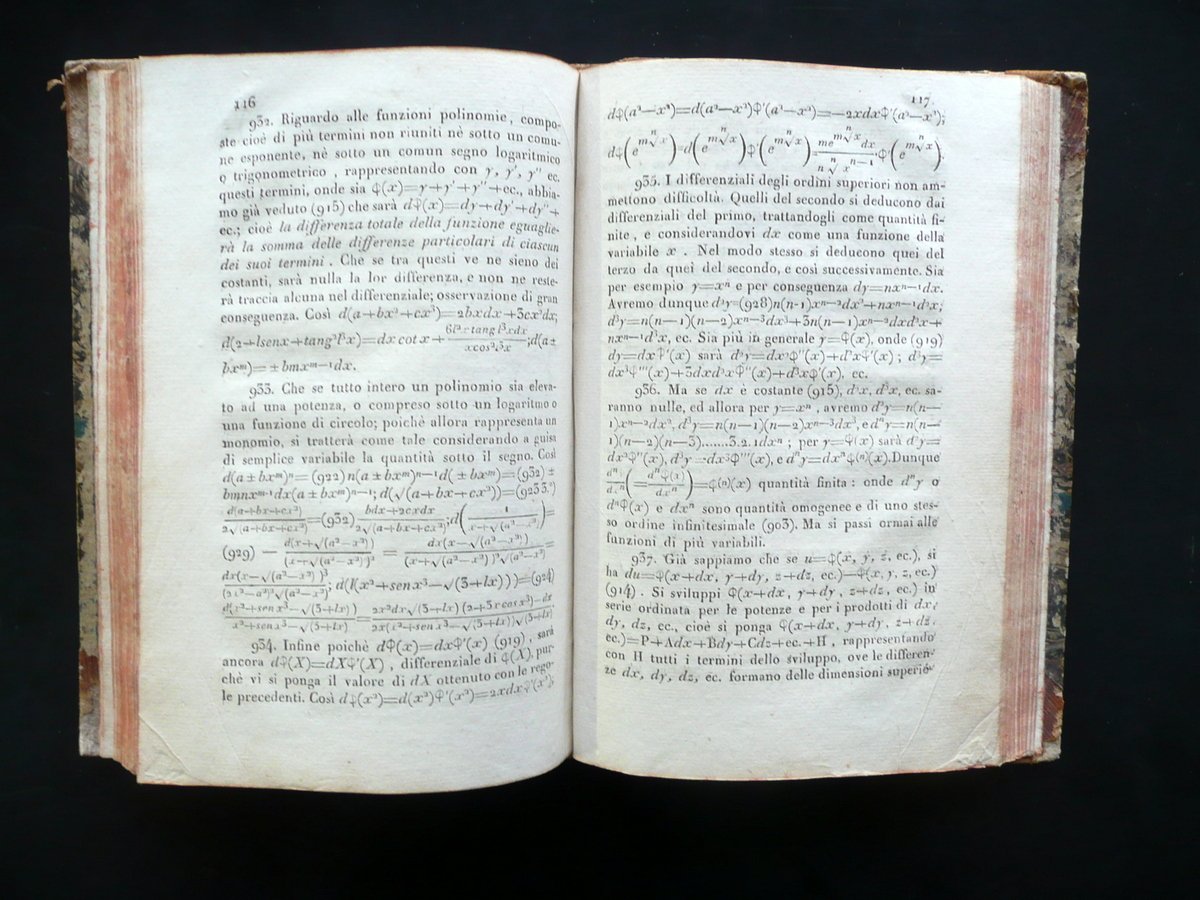 Lezioni elementari di matematiche del Sig. Ab. Marie Tradotte ed illustrate da Stanislao Canovai e Gaetano del Ricco delle scuole pie settima edizione, arricchita di aggiunte e di applicazioni e disposta con nuovo ordine da Giovanni Inghirami delle Scuole Pie Parte II Nella Stamperia Calasanziana, Firenze 1825; cm 20,5x14; pp. 254 pi√π 6 tavole incise in b/n e rip. pi√π volte al termine del testo, numerate da VI a XI; legatura d'epoca in mezza pelle con titolo impresso in oro entro tassello al dorso; piatti marmorizzati. Parte II. Condizioni di conservazione Esemplare ben conservato con tracce d'uso, coperta con alcune piccole abrasioni e mancanze principalmente agli angoli dei piatti e al dorso. Interni buoni con alcune piccole leggere bruniture. Solo parte II. SETT176.L15876 N