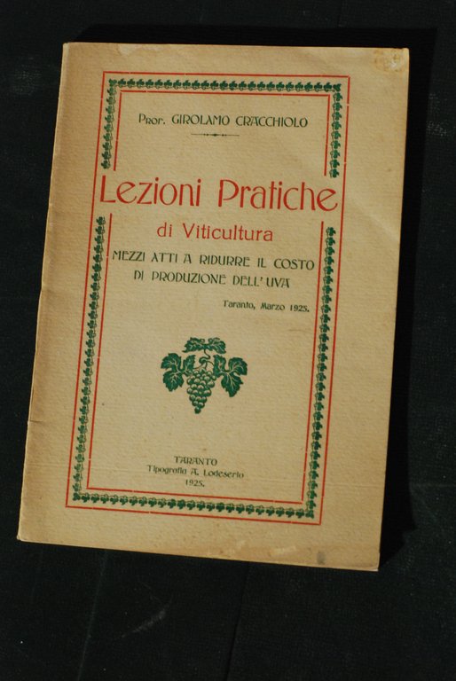 girolamo cracchiolo lezioni pratiche di viticultura viticoltura. 1925 .