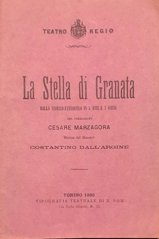 Libretto ballo fantastico "LaStella di Granata Teatro Regio Torino 1880