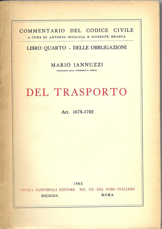 Libro IV - Delle obbligazioni. Del trasporto (Art. 1678-1702)